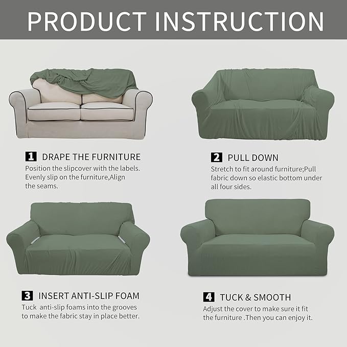 - Dimensions:Loveseat Slipcover: Fit seat width is 40-60 in. More details please refer to the measurement guide in photo, please measure before purchasing.