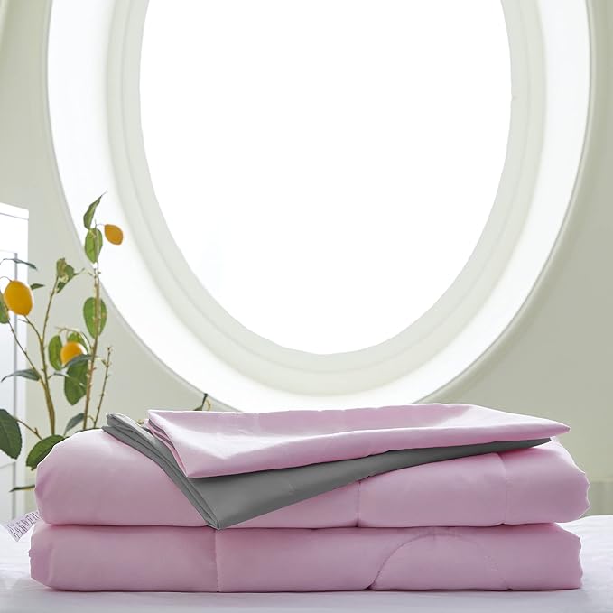 UOZZI BEDDING 4 Pieces Toddler Bedding Set Ultra Soft and Breathable Toddler Sheet Set - Includes Comforter, Flat Sheet, Fitted Sheet and Pillowcase - Pink & Gray