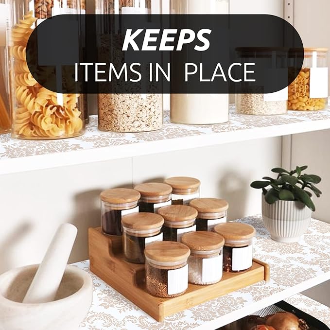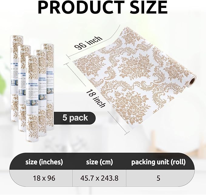 - Elegant Design - The differences of shelf liner between ours and the others is appearance designs. We will take into account the needs of customers for aesthetics. Therefore, to instead of regular plain shelf liners, we thought about European style design, use our shelf liner to decorate your refrigerator, shelf, kitchen, bathroom.