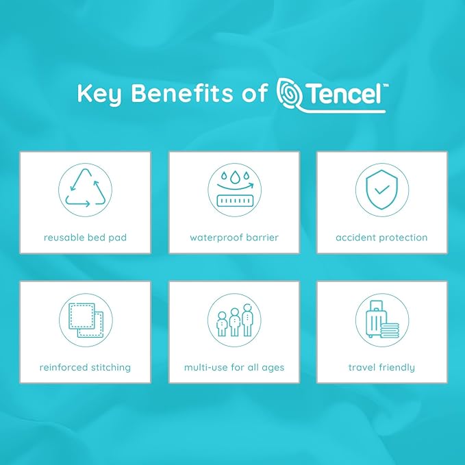 - Durable and Easy to Wash: Reinforced stitching and durable TENCEL fibers make this bed pad long-lasting and reusable. Machine washable and dryer-friendly, it resists shrinking, wrinkling, and ripping, retaining its softness and absorbency even after frequent washing and regular use.