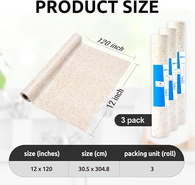 - Details of Shelf Liner - The size of each roll is 12*120 inch, we believe that is perfect wide for the shelves. In addition, it is easy to cut out if you need to modify the size. Moreover, our shelf liner is easy to clean with a towel because it is waterproof and oil-proof.