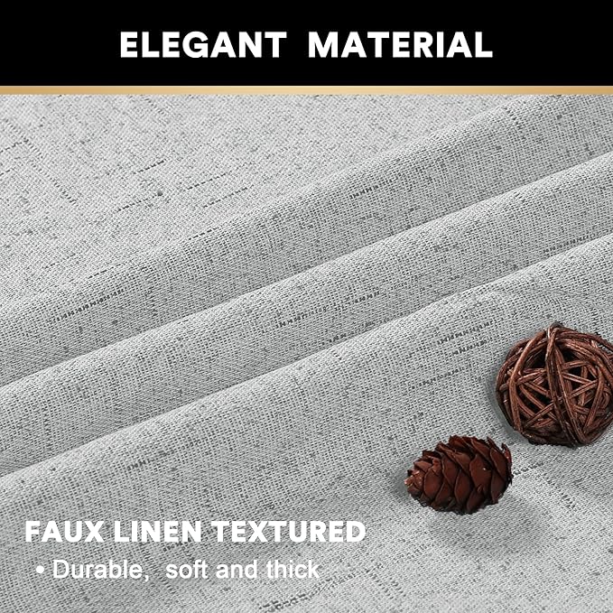 - FAUX LINEN TEXTURE: These blackout curtains are crafted from linen look fabric (100% polyester) with pure white flocking backing. Burlap effect will bring more contempory and farmhouse visual look,create a relaxed and warm home environment