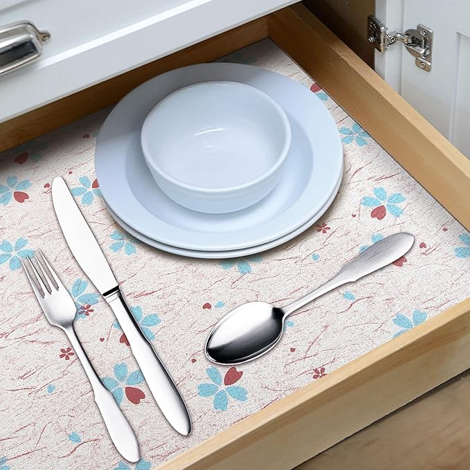 - Elegant Design - The differences of shelf liner between ours and the others is appearance designs. We will take into account the needs of customers for aesthetics. Therefore, to instead of regular plain shelf liners, we thought about European style design, use our shelf liner to decorate your refrigerator, shelf, kitchen, bathroom.