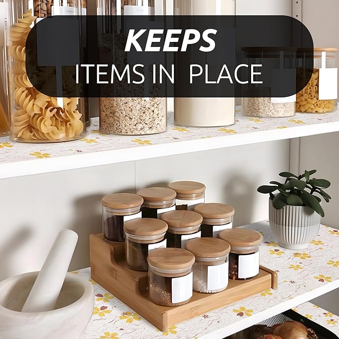 RAY STAR 12X120 Inch Shelf Liner for Kitchen Cabinets, Non-Adhesive Cabinet Liner Washable, PVC Drawer Liner for Dresser Non-Slip Bathroom (Yellow-Floral)(2 Roll)
