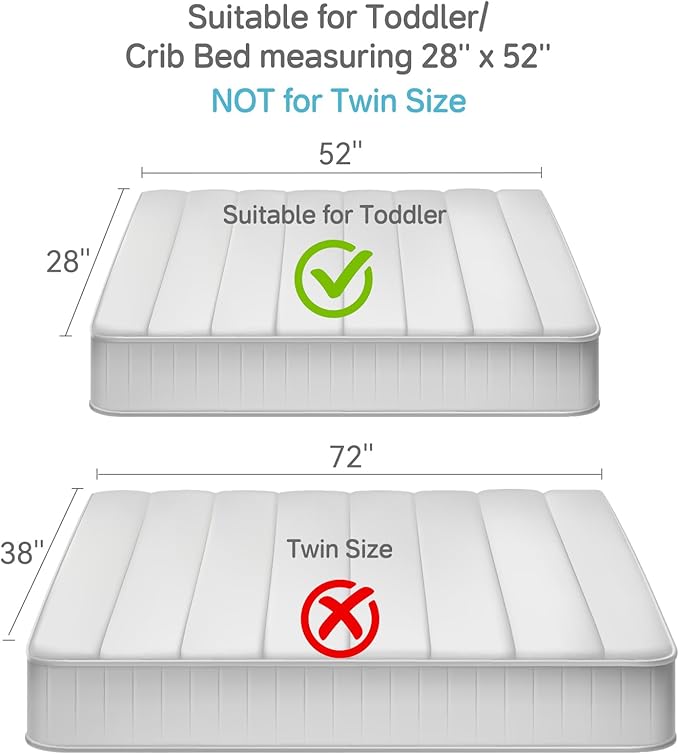 - 【Packing List】The princess toddler comforter set includes 4 pieces of 1 comforter (42''X 58''), 1 top sheet (45''X 60''), 1 fitted sheet (28'' x 52''+7.8''), 1 pillowcase (20''X 29''). Fitted sheet with deep pocket fits mattresses up to 8" and toddler bedroom sets measured to fit a standard size toddler bed.
