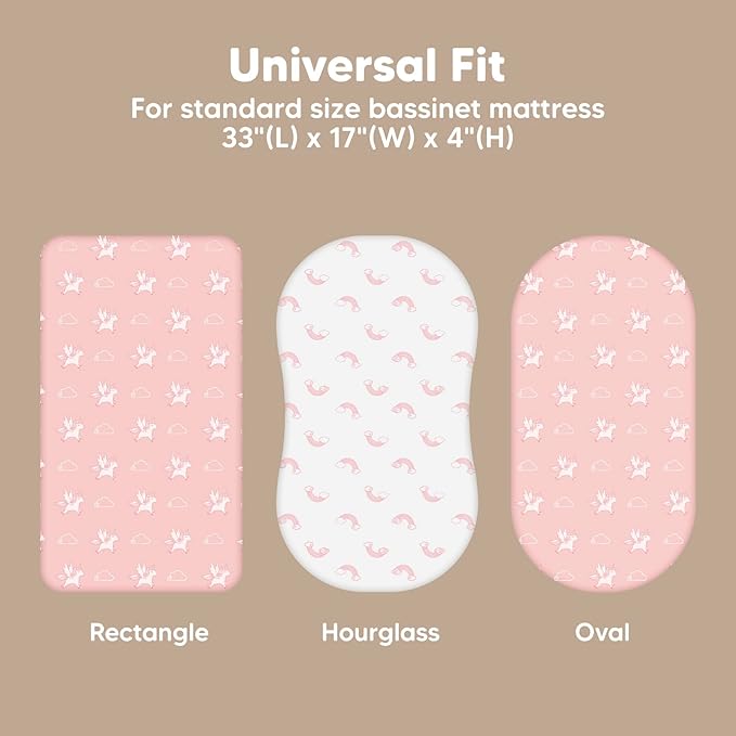 - 2-Pack Bassinet Fitted Sheets - KeaBabies Isla Bassinet Mattress Sheets, sized at 33" x 17" with a depth of up to 4", provide a universal fit for all bassinet mattress pad types. They can be used as hourglass, oval, rectangle bassinet sheets.
