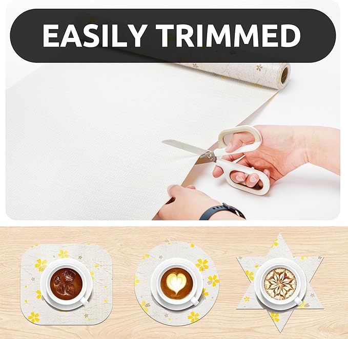 - Elegant Design - The differences of shelf liner between ours and the others is appearance designs. We will take into account the needs of customers for aesthetics. Therefore, to instead of regular plain shelf liners, we thought about European style design, use our shelf liner to decorate your refrigerator, shelf, kitchen, bathroom.