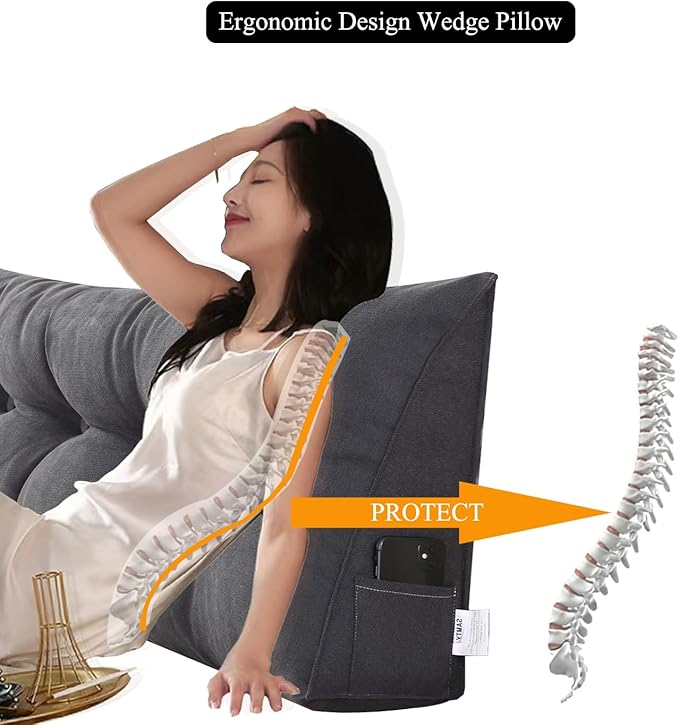 SAMTY Triangular Wedge Pillow headboard King Size for Couch Large headboard Pillow with Removable Cover Back Rest Pillows for Sitting up in Bed