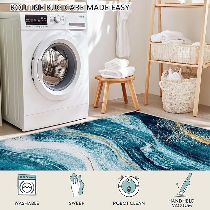 - Machine Washable & Easy Care: Lint-free, it won't trap dirt, small dust and dirt on the surface can be wiped with a rag, broom, vacuum or robot vacuum cleaner. Of course, you can also wash it thoroughly in the washing machine for a deep cleaning. Take it out and look brand new. But it is best to use cold water and never use bleach. Innovative one-piece machine washable rugs makes your home cleaning easier.