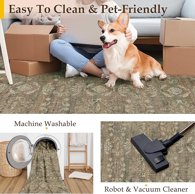 - Classic Vintage Style: PureCozy area rug has a trendy faded style and a unique retro pattern, distressed design blend perfectly with your home, suitable for the living room, bedroom, dining room, laundry room, entryway, kids' room, playroom, kitchen and office