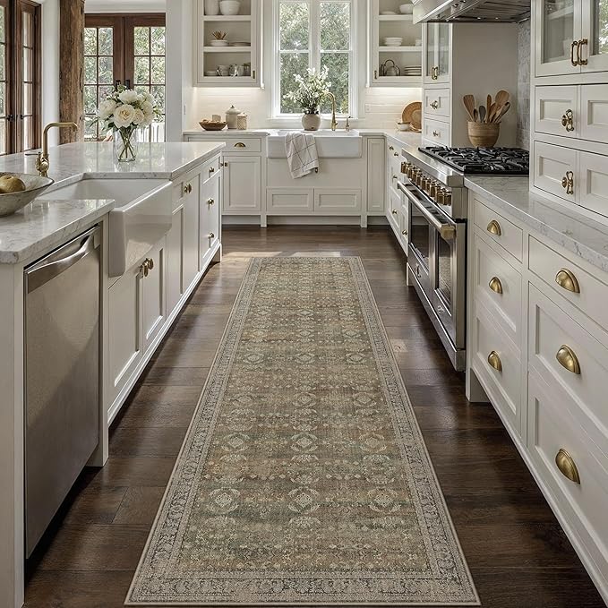 2x12 Brown Area Rug Runners for Hallways Washable Vintage Distressed Carpet Low Pile Non Slip Indoor Retro Soft Long Accent Rug Bedroom Kitchen Bathroom Laundry Dining Living Room