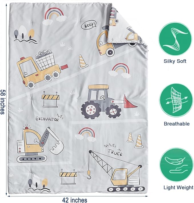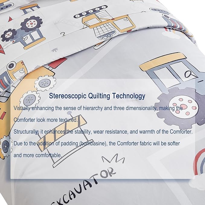 - Excavator Truck Pattern Design:The toddler bed set is combines various excavator truck pattern on grey background,simple and cute,attact to full of children's interest,makes your toddler's room more sweety